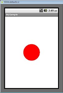 これは、画面にSurfaceViewを表示し、白い背景上に赤い円を描くサンプルです。画面をタッチすると、タッチした場所に円が移動します。起動時には画面の中心にえんが表示されるはずです。
