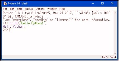 Windowsの場合は、スタートボタンから<Python 3.6>というショートカットを探し、その内にある<IDLE>メニューを選んで起動して下さい。Ma OS Xの場合は、アプリケーションフォルダにインストールされる「Python 3.6」フォルダ内にIDLEが入っていますのでこれを起動しましょう。