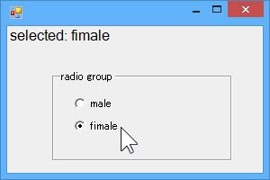RadioButton btn = (RadioButton)sender;イベント用メソッドの引数として渡されるsenderは、objectというクラスのインスタンスで、これがイベントの発生したオブジェクトになります。「なぜ、RadioButtonインスタンスじゃないのか?」というと、イベントというのは特定のコントロールでのみ発生するわけではないからです。どんなコントロールにそのイベント用メソッドが割り当てられているかわかりません。そこで、イベントが発生したインスタンスを、スーパークラスであるobjectに変換して渡すようにしているのです。